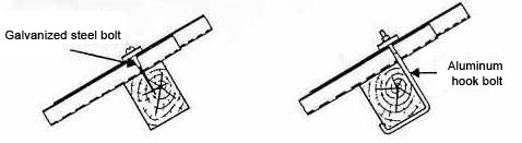 Use aluminum hook bolt, in pieces up to 6,00m. The vertical leg of the hook bolt must to be placed close to the side of the purlin toward to the roof ridge, preventing possible sliping of the tile.