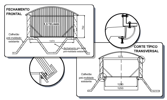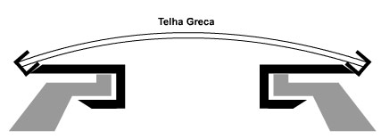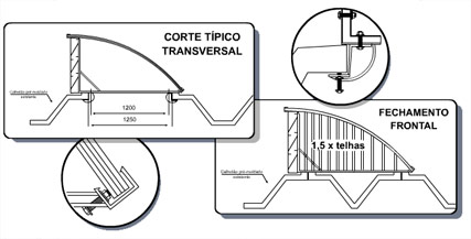 4. Telhas de aclaramento curvado e encaixada em perfis U laterais, com furos de drenagem para água pluvial.