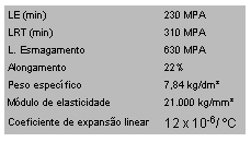 B (270g/m² de zinco) com as seguintes propriedades